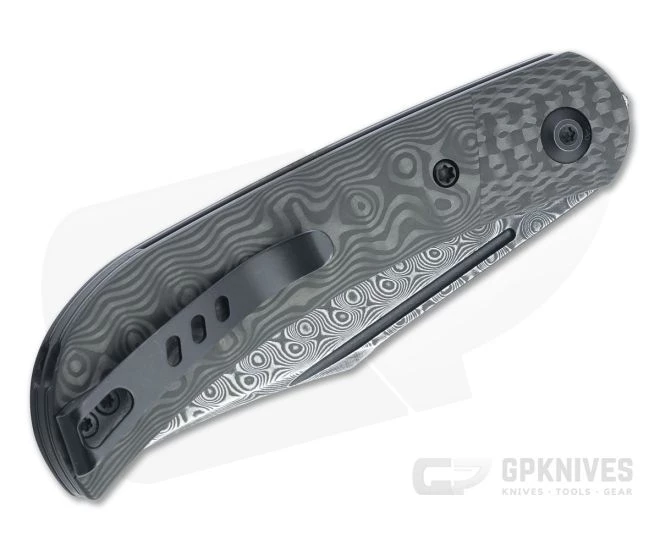 Blade: Made from black hand rubbed stainless San Mai Damascus, the blade is executed in a hollow ground, Bowie style clip point that offers excellent performance in both piercing and slicing. While the Damascus blade delivers stunning visual appeal, the utilitarian profile has long been used by hunters and is capable of handling both fine work and heavy use. Dual fullers on the blade enhance the aesthetics while offering an easy way to open the blade with two hands or utilize the top flipper tab for fast, smooth front flipper deployment on the caged ceramic bearing pivot.