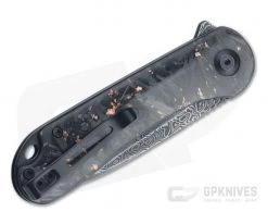 Handle: Stainless steel liners support stunning scales made from copper shred and carbon fiber shred in clear resin. The liners ride proud of the subtly contoured scales, providing a more comfortable feel in the hand while carrying slim in the pocket. A versatile and ergonomic design offers a secure grip for multiple tasks. The stainless steel liner lock is smooth, simple, and reliable in operation with solid lockup for safe use.