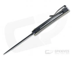 Handle: Stainless steel liners supporting black hand rubbed brass scales form the sweeping handle with deep chamfers for comfort. The handle design is ergonomic and secure, delivering a svelte package for carry, being under 1 1/8 inches wide while having a satisfying heft in the hand from the brass scales. A stainless steel liner lock is smooth, solid, and easy to operate for safe use, while a partial back spacer completes the semi-open construction.