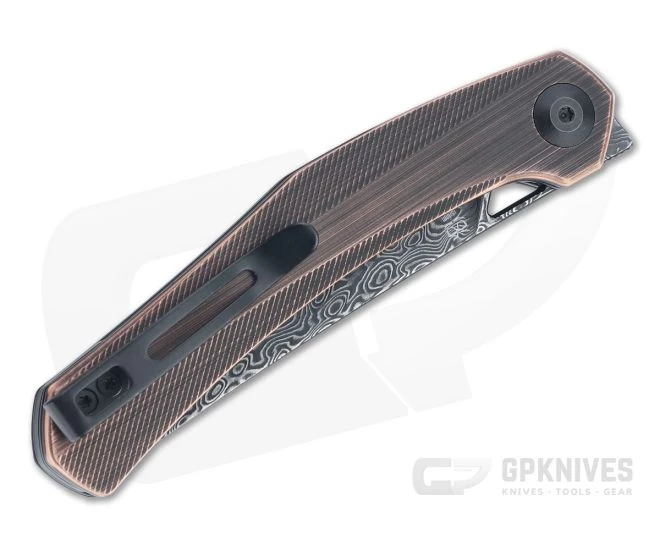 Iconic custom designer Elijah Isham is back with another striking contemporary design in the Lazar front flipper from CIVIVI. Slim and compact for daily carry, the Lazar has a slender, slicing blade with Persian style and Isham’s visually appealing and functional trademark handle design. This version comes with a black hand rubbed stainless San Mai Damascus steel blade, matching copper scales and black stainless steel liners.