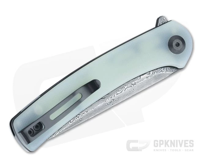 A scaled down version of the original, the CIVIVI Mini Asticus still offers slim, lightweight carry with style and performance in equal measure. The Mini also comes with a stainless blade for minimal maintenance on your daily carry. This version comes with a black hand rubbed stainless San Mai Damascus steel blade and natural (translucent Jade green) G10 handle scales.