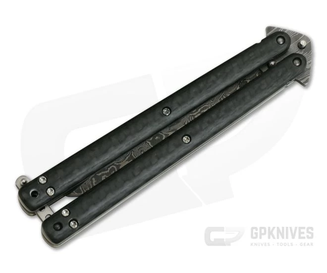 This custom balisong from maker Craig Camerer is a stunner! You can feel the craftsmanship and hard work Craig put into this piece as soon as you pick it up. The clip point blade is made from his custom Camerer Carbon Damascus steel paired with beautiful Green Glow Carbon Fiber. This is a refined piece for the user or collector.