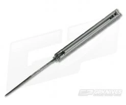 The Handle: This skeleton handle is marvelous. Weight reduction is one thing, but the grip it adds to the overall experience is quite nice. Completely open titanium construction has a clean effect that you can see right through. No liners or unnecessary add-ons to weigh it down. The five rows’ inner circles were left a machine satin shine while the entire outer surface, including the edges, were heavily tumbled. In between each row is a decorative four-circle pattern for accent. Craig put a light orange peel finish on the innards of the handle for that hidden gem. The handle’s theme continues to the latch. Minus the pin, it also is entirely constructed of titanium with three smaller machined holes and stonewash finishing. It operates on two brass washers creating smooth lockup in the closed or open position every time.