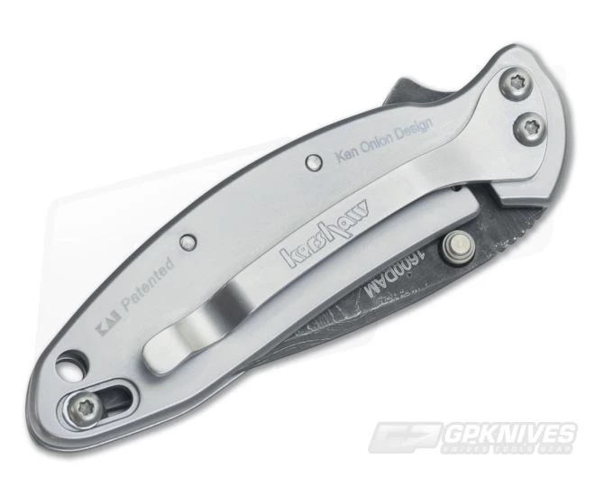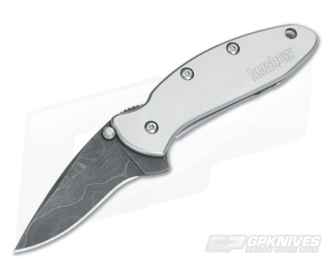 The Kershaw Chive is a classic Ken Onion design perfect as a gentleman’s every day carry thanks to the compact size and fast, one hand operation. As with all Chives this version comes with SpeedSafe assisted opening and deploys via the index flipper or dual thumb stud/stop pins. This stainless steel frame lock variant has a carbon steel Damascus blade and media blasted stainless steel handles.