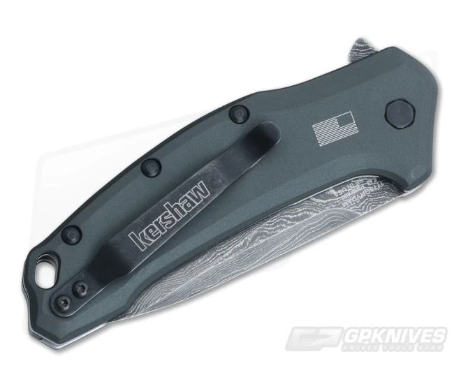 The popular USA Made 1776 Link assisted flipper from Kershaw Knives has been upgraded with a quality Damascus Blade. The pattern of folded steel swirls will vary from blade to blade making each piece truly unique.