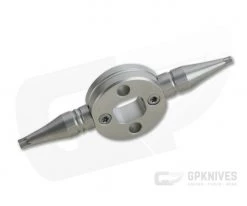 Handle: The semi-open construction consists of dual slabs of contoured and textured blue anodized titanium and a matching partial back spacer. Simple and elegant, the handles offer traction and comfort in use. The hardened steel lock face equipped integral frame lock delivers smooth operation and secure lockup over the life of the knife. An end mounted clip screw features a tungsten carbide glass breaker and can be replaced with a standard cap screw (included).