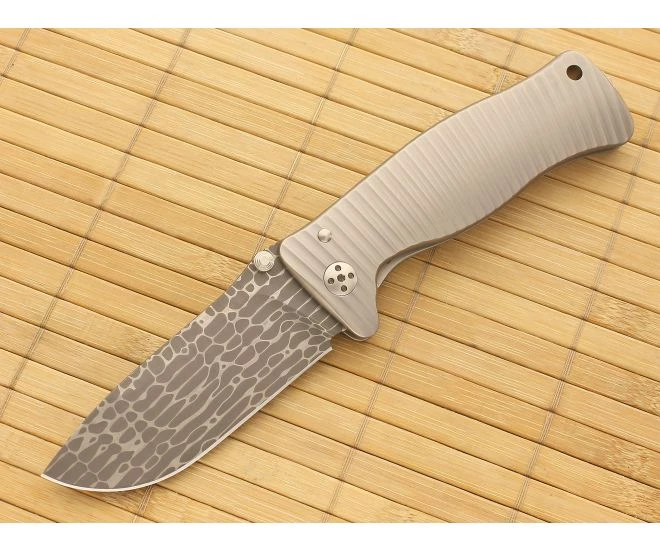 LionSteel SR1 Nichols Lizard Damascus Titanium Handle