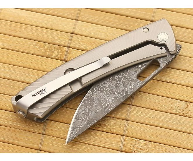 LionSteel TiSpine Integral Folder Matte Grey Damascus