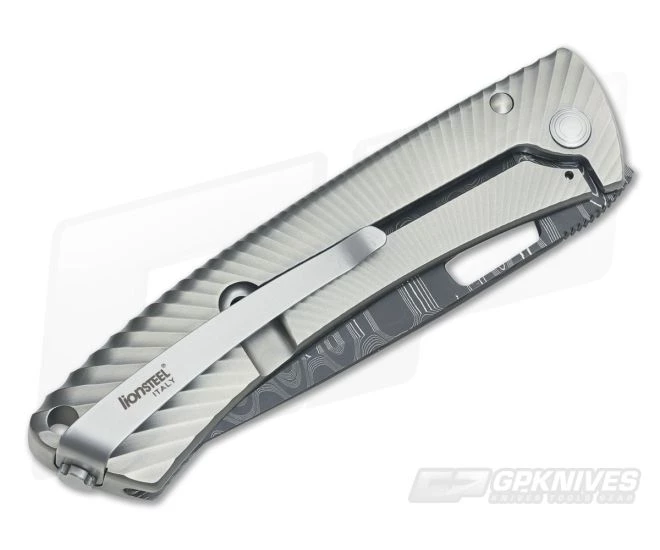 LionSteel TiSpine Integral Folder Matte Grey Fate Damascus