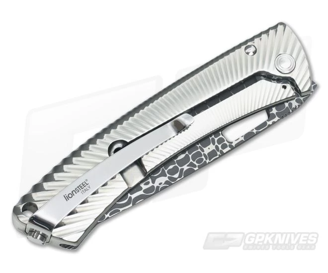 LionSteel TiSpine Integral Folder Shine Grey Damascus
