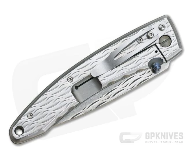 Handle: A robust, stainless steel frame construction is beautifully polished and then given a stylized wave textured finish for visual appeal and added traction. The integral frame lock mechanism is strong and secure with intuitive operation A generous hole at the pommel end is provided for lanyard attachment.
