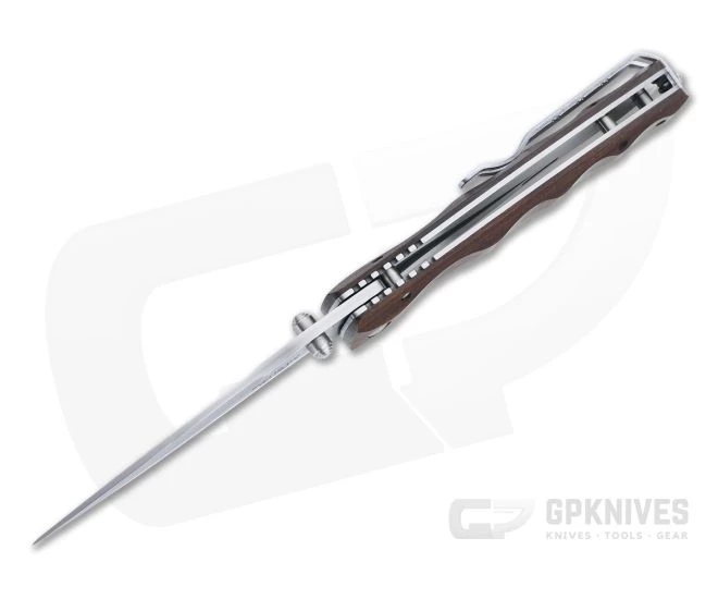 Handle: Robust steel liners support handsome Ironwood handle scales with wide grooves for added traction. Strategic jimping around the handle offers added security in multiple grips, while the clean, tapered design is ergonomic in use. The liner lock mechanism is smooth, simple, and reliable with solid lockup.
