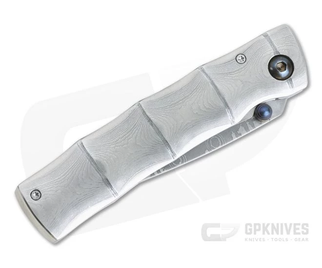 Handle: Stainless steel liners support handsome, full Damascus handle scales contoured to look and feel like Bamboo for a truly custom look and feel. The liner lock mechanism delivers reliable lockup and smooth operation. Jimping at the spine and pommel add traction in the hand.