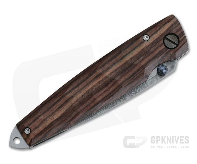 Part of the Shinra Natural series, the Mcusta Tsuchi has the same design as MC-3 Series with a warm natural aesthetic thanks to the wood handle scales. The Tsuchi is a functional and elegant dress carry folding knife with modern performance and archetypal Japanese style. This version comes equipped with textured Indian Rosewood handle scales and San Mai VG10 core Damascus blade.