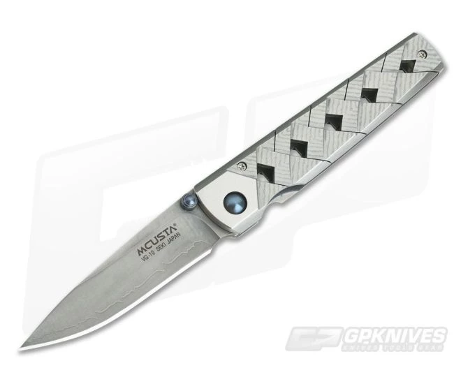 The Mcusta Yoroi is a stylish gentleman’s folder that offers modern performance and stylish materials with a classic, timeless style. The handles are full Damascus with a visually striking and high traction basket weave milling. Add to that a San Mai VG10 blade and custom anodized pivot and thumb studs and you’ve got a functional blade that elevates both style and performance.