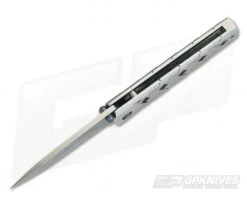 Blade: Crafted from San Mai clad VG-10 stainless steel, the drop point blade has a shallow hollow grind for excellent slicing and piercing performance while retaining good durability. It opens smoothly on Teflon washers via dual blue anodized thumb studs. The San Mai clad gives each blade a unique, wavy Hamon design for a striking visual appeal.