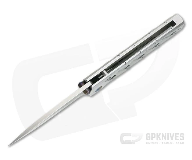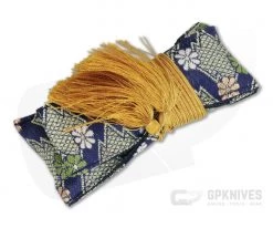 Blade: Crafted from San Mai, 33 layer nickel Damascus clad VG10 stainless steel, the drop point blade has a shallow hollow grind for excellent slicing and piercing performance while retaining good durability. It opens smoothly on Teflon washers via dual blue anodized thumb studs. The San Mai clad gives each blade a unique, wavy Hamon design for a striking visual appeal.