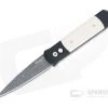 The Protech Knives Godfather is a classic automatic folder inspired by traditional Italian folding Stilettos. Protech combines American innovation, contemporary materials and premium high-tech manufacturing to offer this time-honoured design with modern performance. This tuxedo ivory Micarta inlays, a matching button inlay, black anodized aluminum handle and Vegas Forge stainless “Spirograph” Damascus blade.