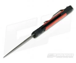 Handle: A contoured, coffin-shaped handle made of Black 6061-T6 Hard Anodized aluminum provides a comfortable in-hand feel in a variety of grips and deploys smoothly from the pocket for use. The Red Apple Coral Inlays are polished for a nice contrast to the matte finish of the aluminum handle and elevates this knife to the top of the Gentleman’s Tactical category. The Godson 750 is an elegant, custom, every day carry blade.