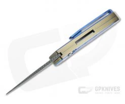 The Protech Knives Sprint is a compact daily carry automatic offering modern materials, high-tech manufacturing, advanced coil spring mechanism, and American production with dress carry style. This full titanium Custom comes with a Vegas Forge Herringbone Damascus blade, two-tone bronze and blue 3D wave milled titanium handles, milled titanium clip and pearl button inlay.