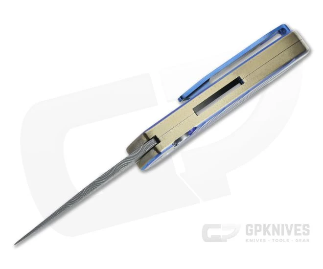 The Protech Knives Sprint is a compact daily carry automatic offering modern materials, high-tech manufacturing, advanced coil spring mechanism, and American production with dress carry style. This full titanium Custom comes with a Vegas Forge Spirograph Damascus blade, two-tone bronze and blue 3D wave milled titanium handles, milled titanium clip and pearl button inlay.