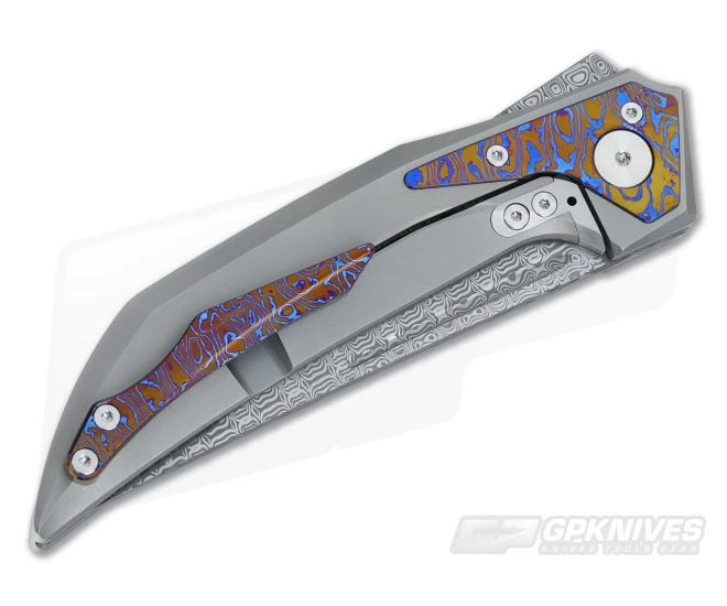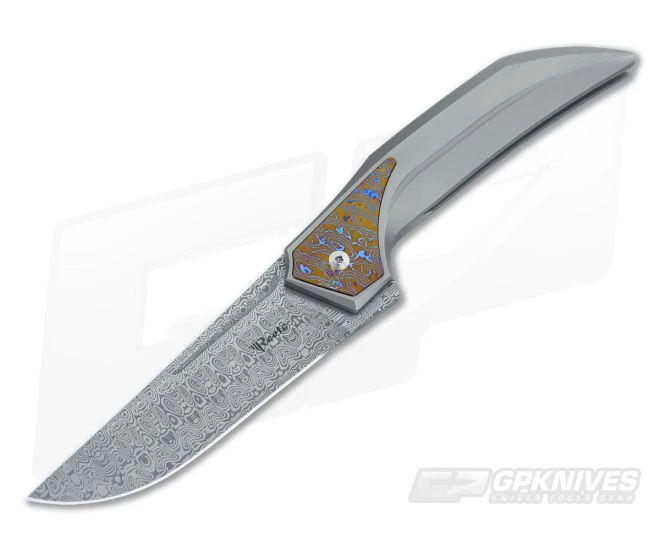 The Blade: The blade of the future is composed of Damasteel Damascus with a long flat grind that stretches all the way to the handle. The flipper seamlessly flows into the blade tang creating a unique look with a small fuller for character. The usual effortless flipping action found in most reate knives is present here, and thanks to some bearings everything is silky smooth.
