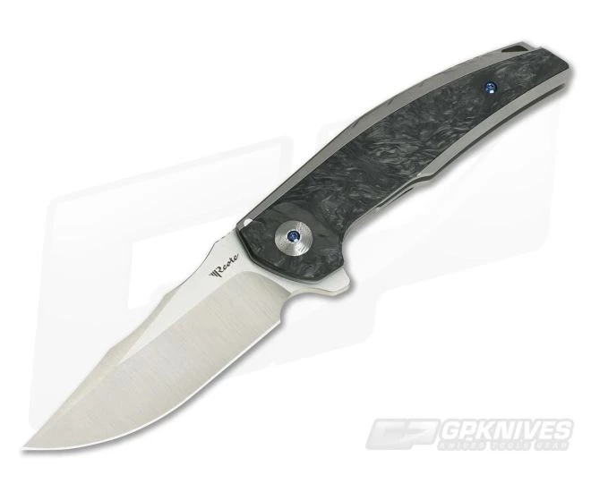 The Reate Knives JACK is a large, tactical, integral frame lock flipper showcasing the fit, finish and design quality capabilities of Reate Knives. The blade is made from high performance Bohler M390 stainless steel. The bead blast grey integral titanium frame supports dual marbled carbon fiber inlays that take the JACK to the next level is style and comfort. Whether you are elevating your every day carry or adding to your collection the Reate JACK is an excellent choice.
