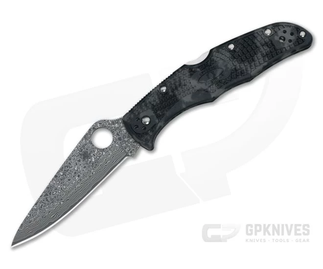 Blade: A saber ground, modified drop point blade comes with a razor sharp plain edge. Offered in a visually stunning, high performance D.P.S. 15 Damascus/VG10 laminate this Endura is sure to catch some eyes. Cutting performance is retained thanks to the VG10 core while delivering unparalleled visual style. Spyderco’s ambidextrous Round Hole opener makes for smooth, easy, one hand operation. Present as well is the jimped thumb ramp for added control in both fine and heavy work. With just under 3.5 inches of cutting edge, this is an excellent cutting tool you will want to have with you every day.