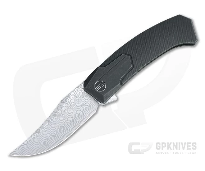 The WE Knives Shuddan is the third collaboration with Polish custom knife maker Rafal Brzeski (BRR Knives). Based on his custom Shudder, this is a substantial titanium frame lock flipper has an industrial design with a tactical trailing point blade. This version comes with a Hakkapella pattern Damasteel blade and stonewashed black titanium handles.