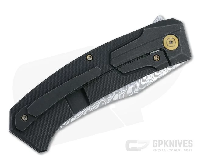 Blade: The stunning Damasteel stainless Damascus trailing point blade comes with a high flat grind for excellent slicing capability and a fine piercing tip. A spine swedge lends added appeal to the striking blade while the ceramic bearing pivot delivers fast flipper deployment and smooth operation.