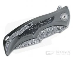 Burger Custom Atlas SFL Drop Point Satin M390 Damasteel Gray Frame Lock Front Flipper 4566